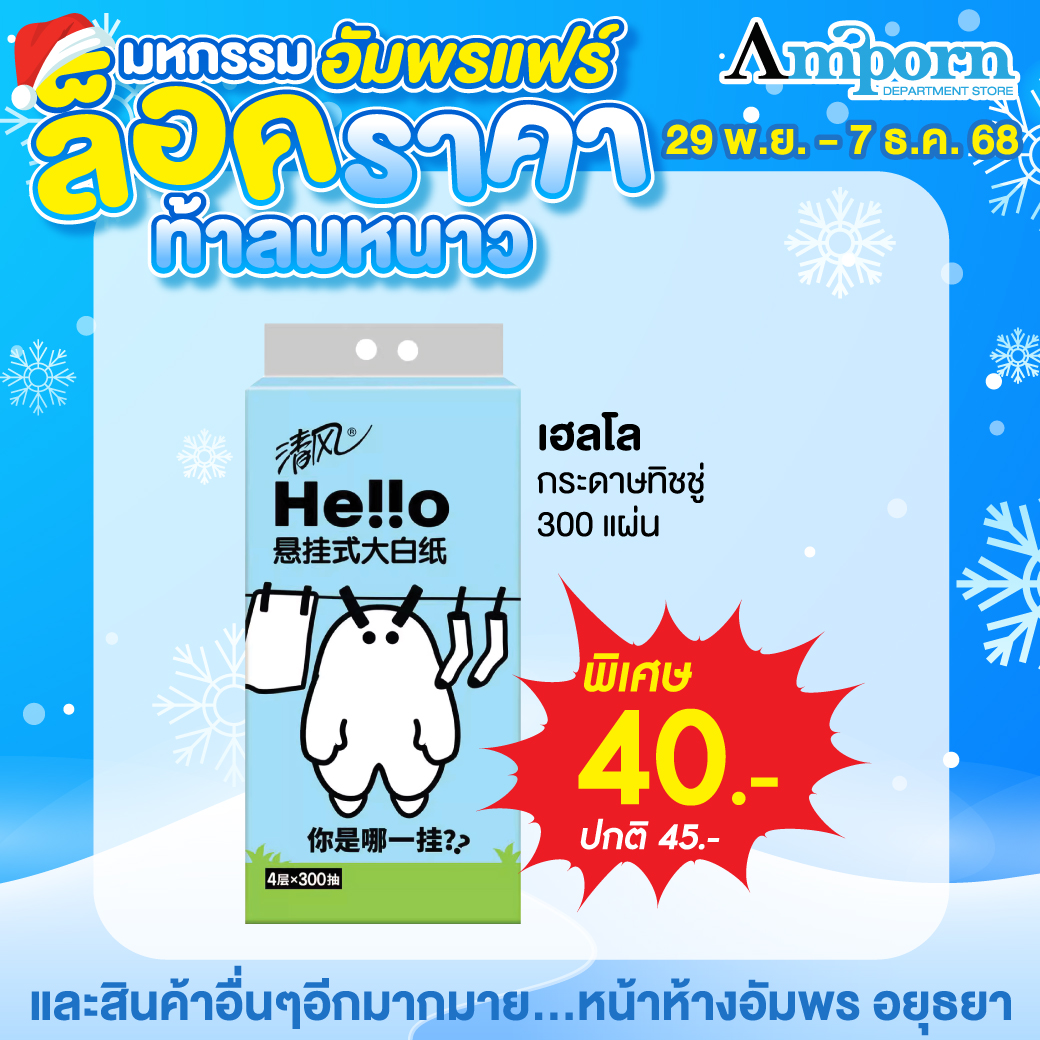 กระดาษทิชชู่ เฮลโล 300 แผ่น