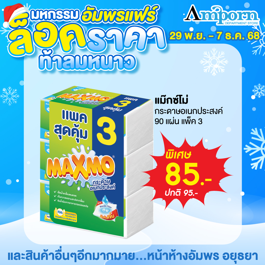 กระดาษอเนกประสงค์แม็กซ์โม 90แผ่น แพ็ค 3
