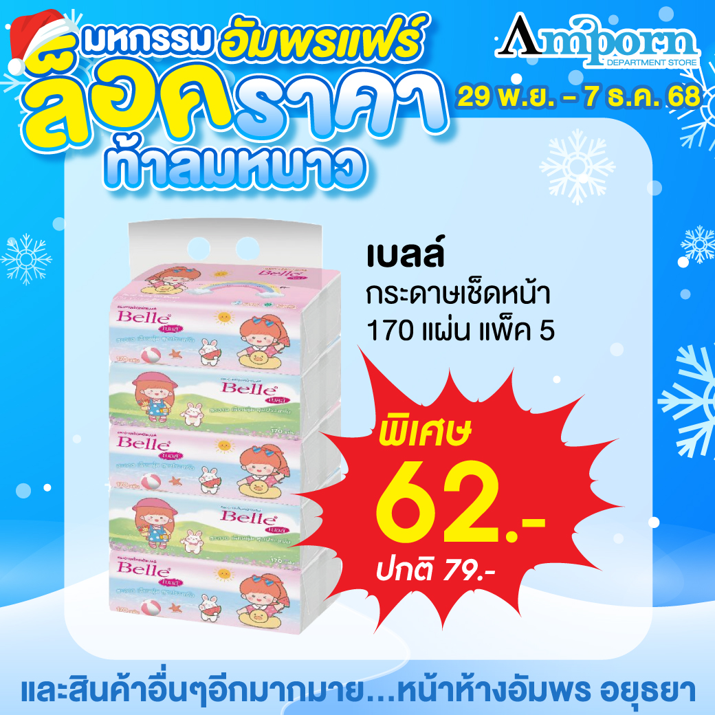 Belle กระดาษเช็คหน้า 170แผ่น แพ็ค5