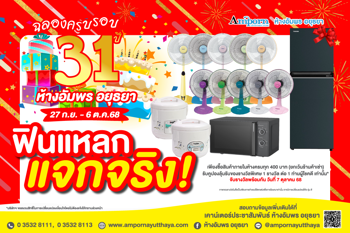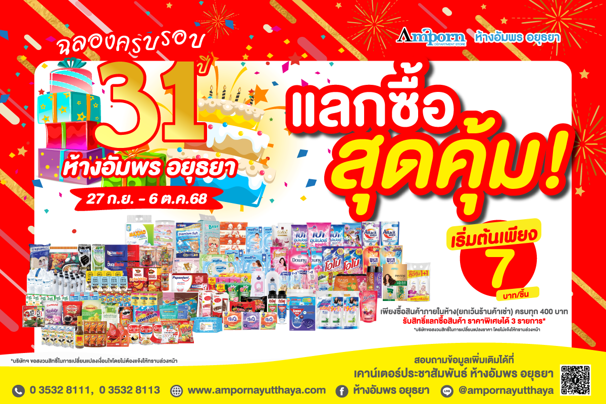 ร่วมฉลองครบรอบ 31 ปี ห้างอัมพร อยุธยา ได้ตั้งแต่วันที่ 27 กันยายน - 6 ตุลาคม 2568